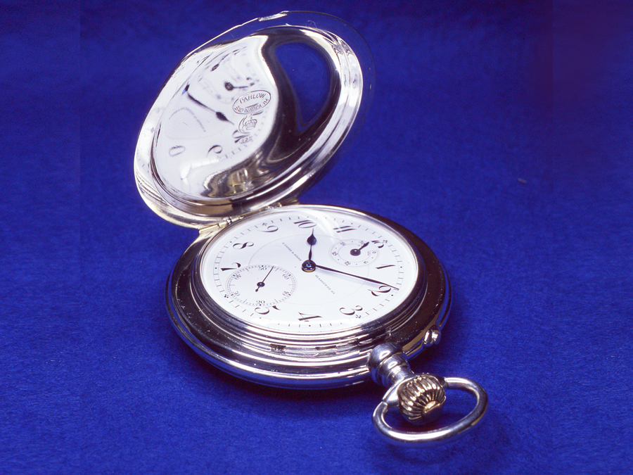 Savonette - Silbergehaeuse, 925, offenes A. Lange & Soehne Chronometer - Gehaeuse umgearbeitet, Mittelteil in der Hoehe vergröessert, neue Scharniere, Wurffeder, Schliessfeder und Druckstiftfeder gefertigt, Savonette - Frontdeckel, Glasreifen neu angearbeitet, Staubboden durch Werkverglasung ersetzt, 39 Gehaeuseteile.