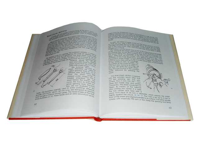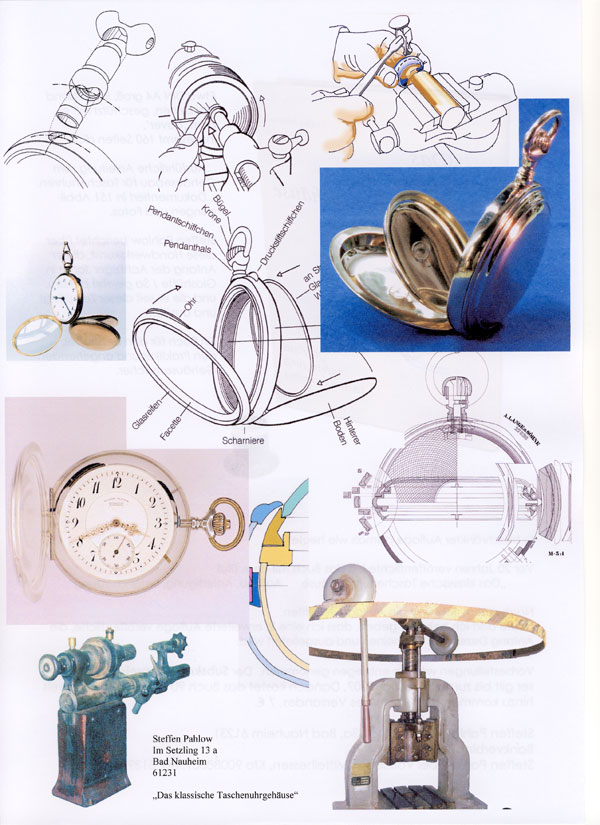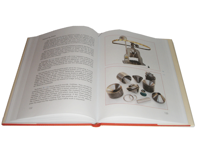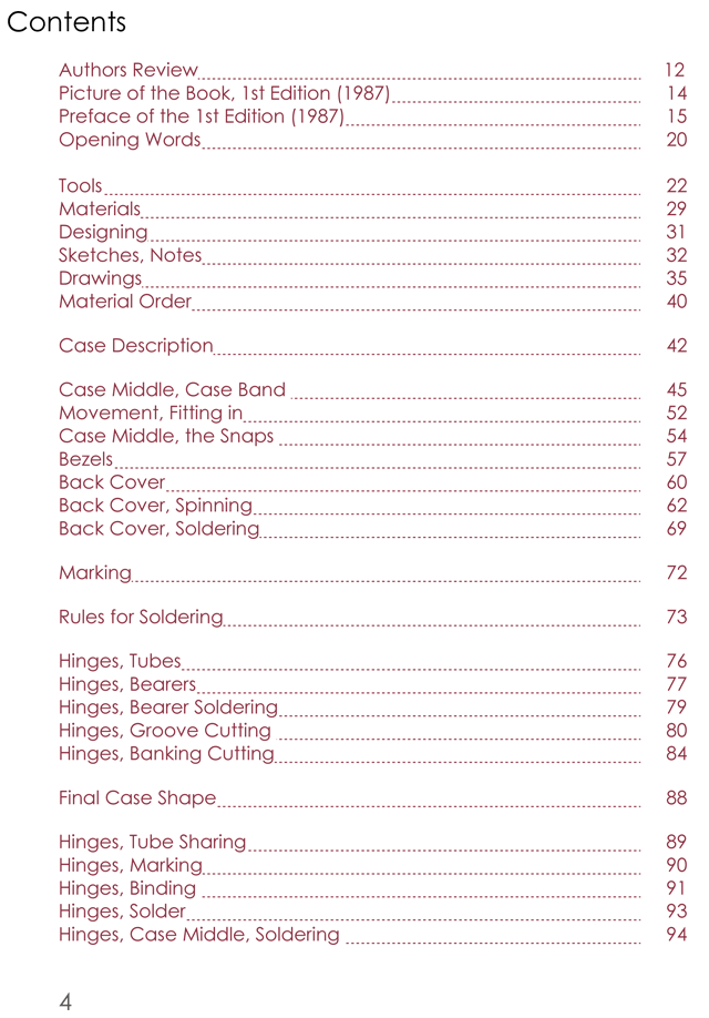 The book describes the one-off productions in text, photos, drawings, detailed cross sections (altogether 151 drawings, pics etc.) as pocket-watch-cases were manufactured, and how he continue practicing this extinct handicraft.