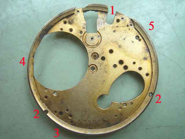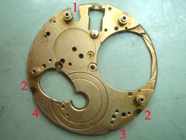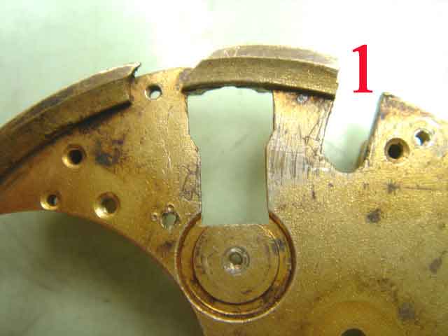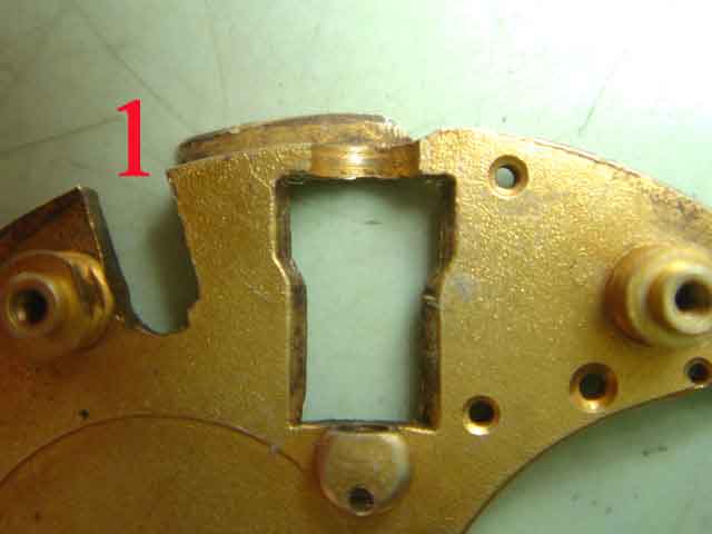 (1) Unterplatte für eine neue Zeigerstellung ausgesägt.