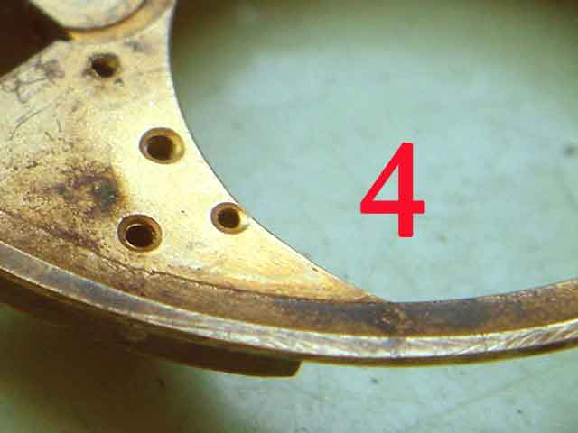 (3) Tiefe Feilspuren auf der oberen Seite.