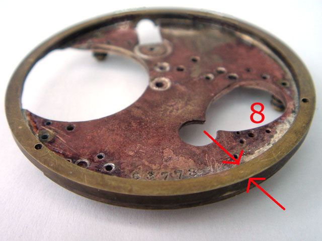(8) Der Rand von der unteren Seite. Er ist breiter und springt nach innen. Gut sichtbar auch eine wenig