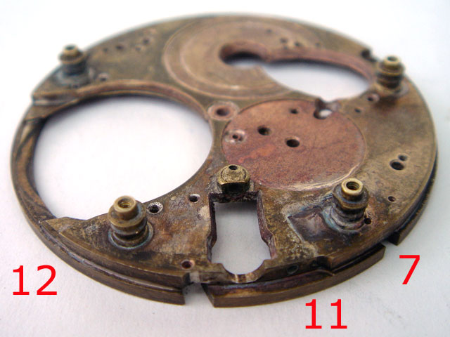 (11) für die Aufziehwellen-Brücke, (12) für das Federhaus.