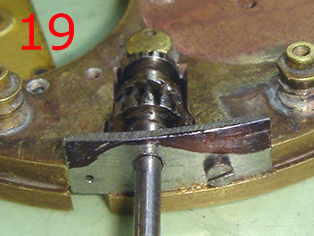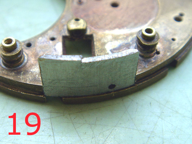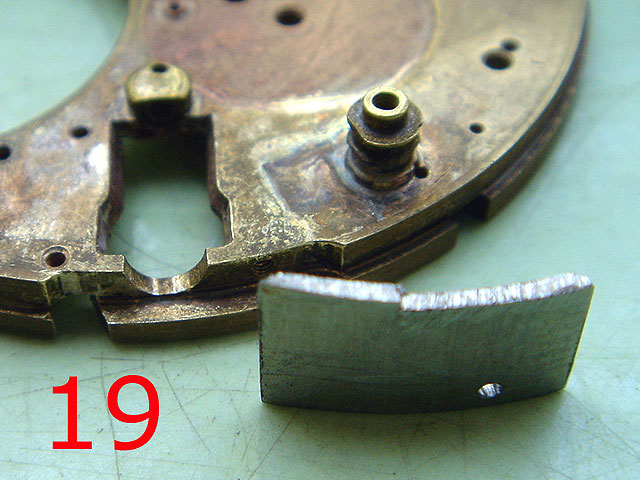 (19) Die Brücke für die Aufziehwelle war nicht zu gebrauchen, Form und Bohrung zu groß.