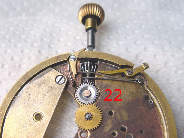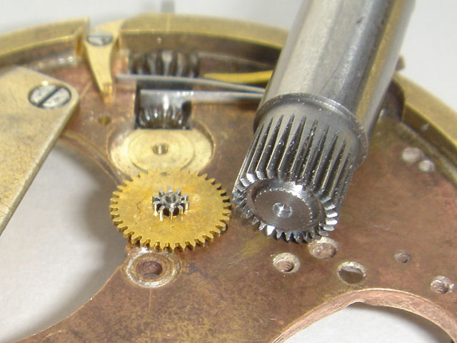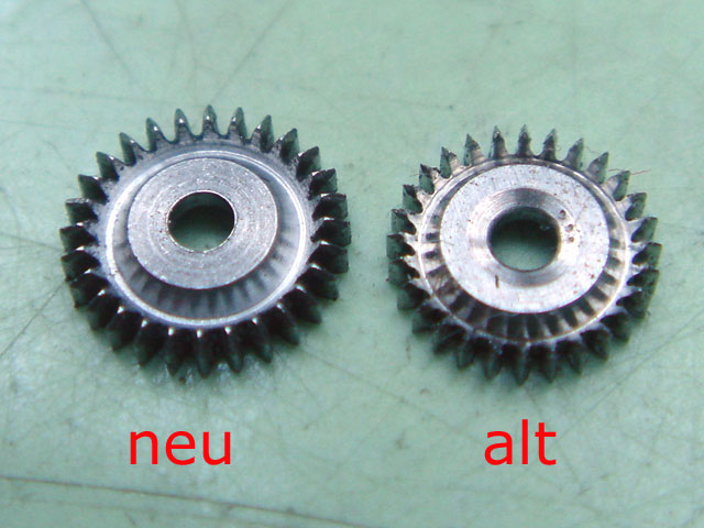 Dieses ist neu angefertigt, da der Durchmesser zu klein war. Auf den Fotos sieht man, die Verzahnung ist eine besondere. Diese wurde in Glashütte so gefertigt. Ein sanftes Eingreifen des Aufziehsperrteiles ist die Folge. Der Clip veranschaulicht die Funktionen.